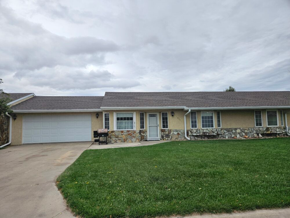 One level townhouse in New Towne Estates. 3 bedroom, 2 bath with 1,288 square feet of living space. Double car attached garage. New roof in Summer of 2025. Large living room with bay window for lots of natural light and an electric fireplace. Kitchen has lots of storage and newer appliances are included. Concrete covered patio area in back allows a great view of the pasture and horses to the North of the property. Homeowners association dues of $75 per month cover lawn, snow removal and garbage service.
